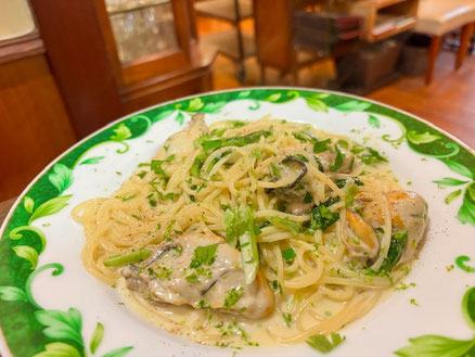 【広島産「かき」と生海苔・青菜のスパゲティ―】